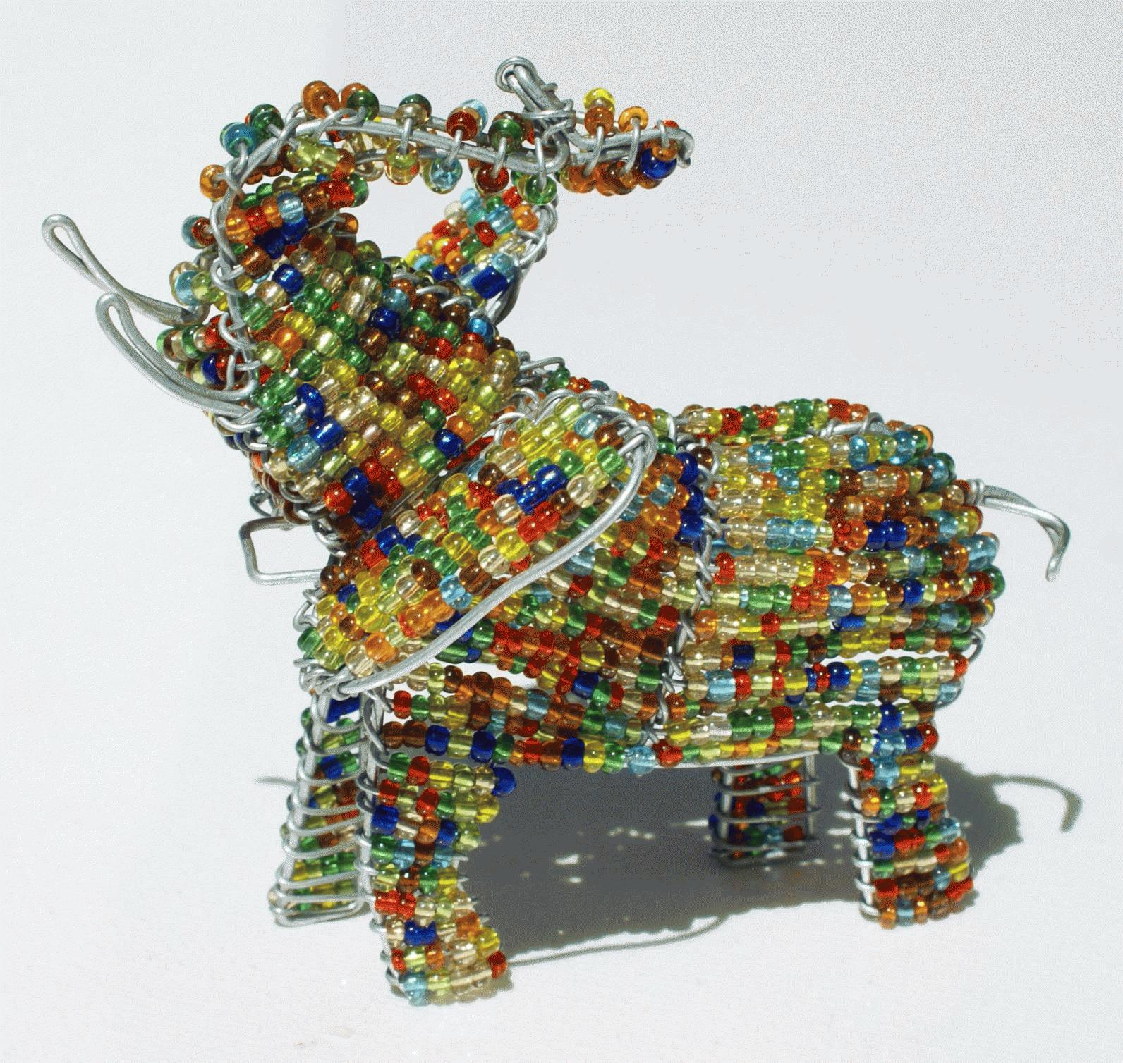 Elefante de metal y perlas de colores, tamano 11x9x6 cm