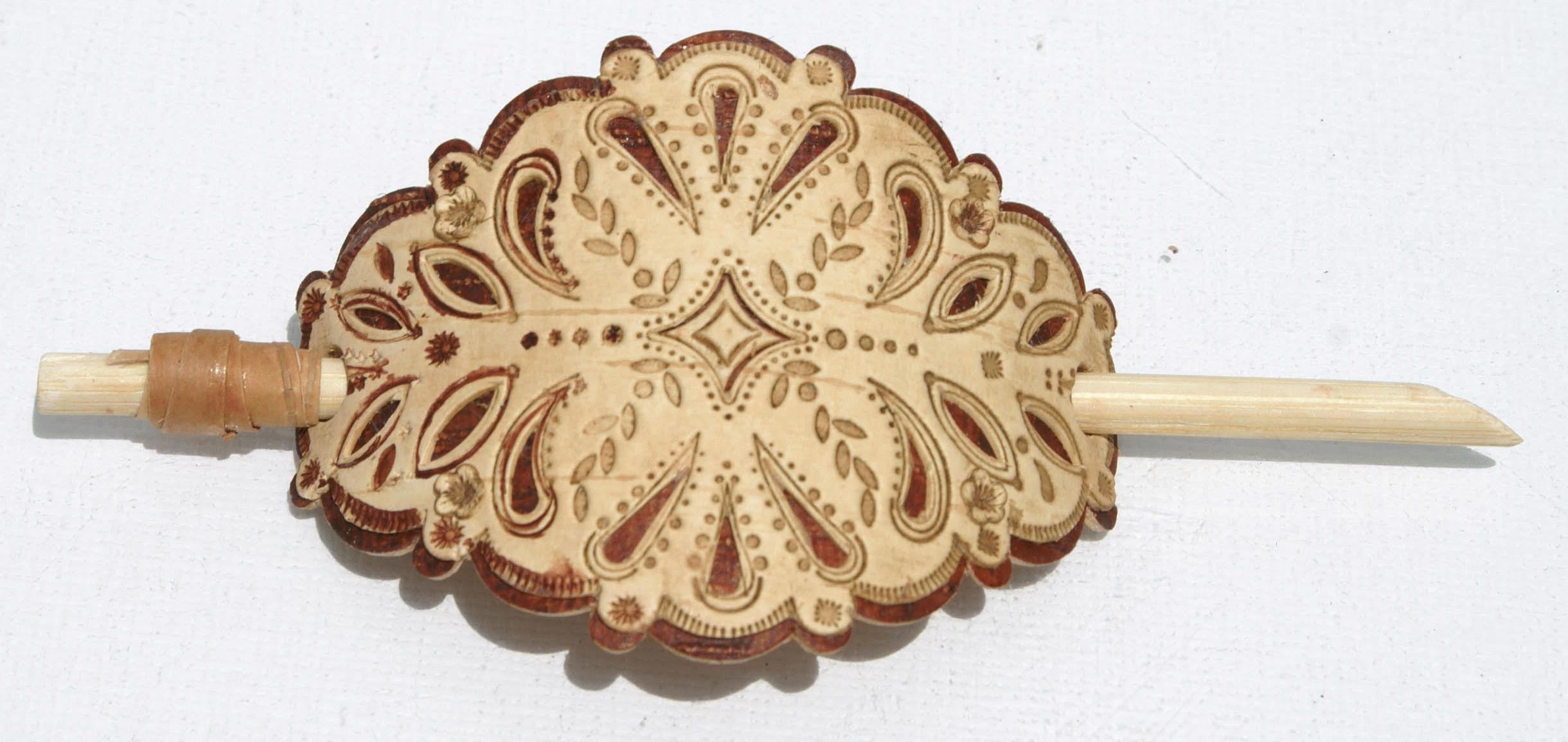 Vincha de corteza de abedul, tallada y decorada