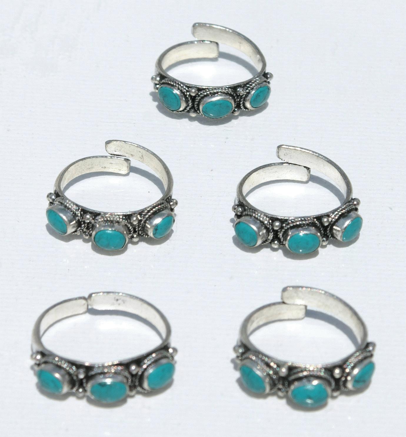 Anillos de metal y tres piedras turquesas, bisuteria Tibetana