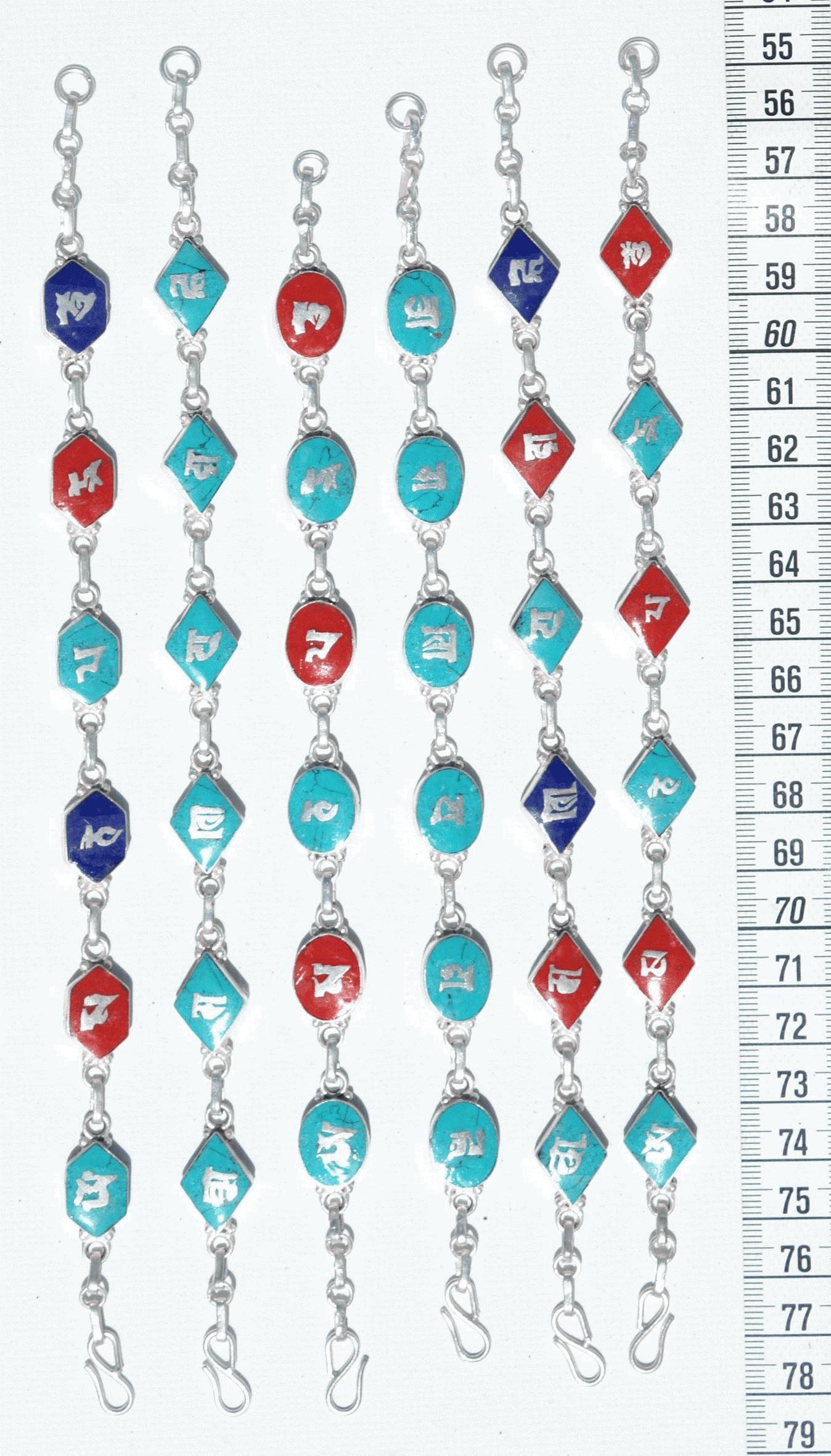Pulseras de metal de colores y signos tibetanos