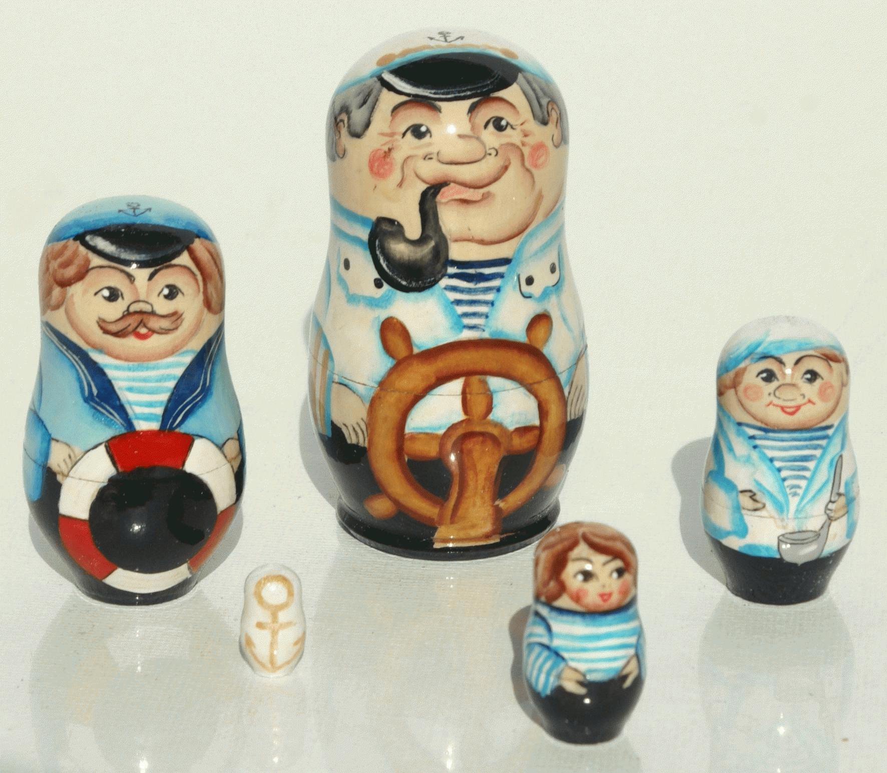 Matrioska de marinero, hecha en madera, altura 10 cm